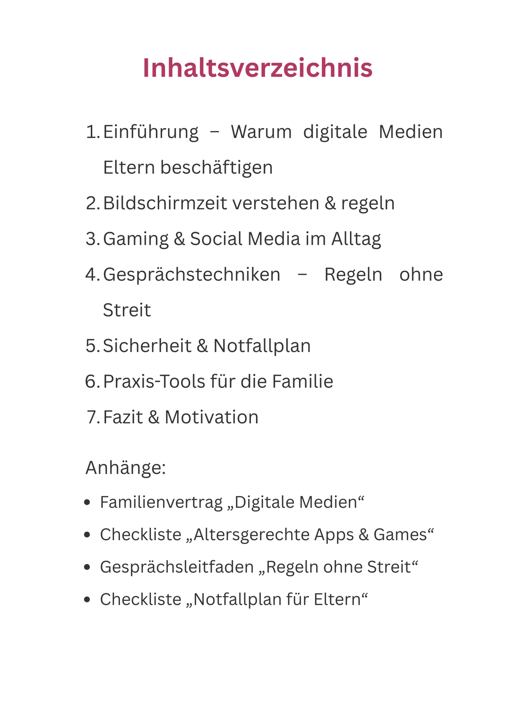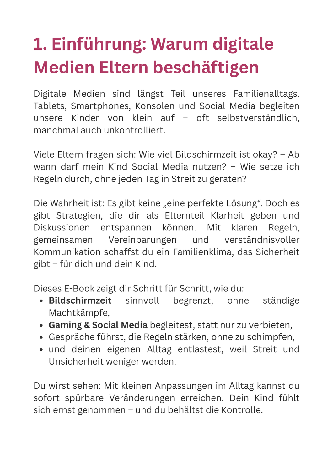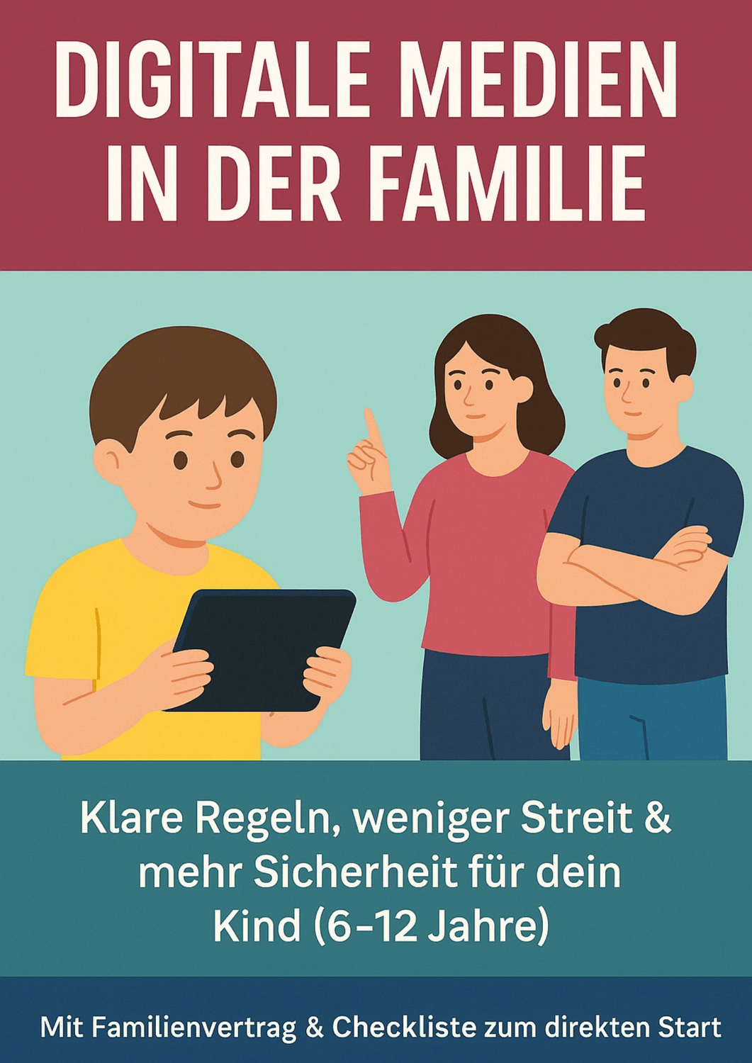Mit dem E-Book „Digitale Medien in der Familie – Regeln ohne Streit“ bekommst du sofort anwendbare Strategien & Vorlagen für klare Regeln – ohne tägliche Diskussionen.