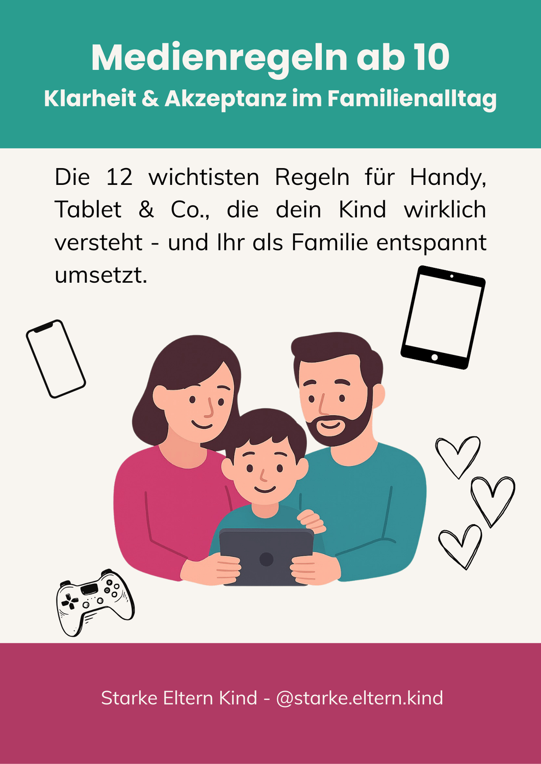 Diese praktische Checkliste zeigt dir sofort umsetzbare Regeln für Handy, Tablet & Co. – abgestimmt auf Kinder ab etwa 10 Jahren. Mit klaren Vereinbar-ungen, die Diskussionen beenden und für mehr Orientierung sorgen, bringst du Ruhe in euren Alltag. Einfach ausdrucken, gemeinsam durch-gehen und direkt starten – weniger Streit, mehr Klarheit und ein entspannteres Miteinander.