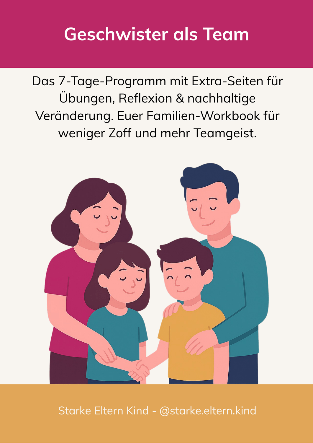 Dieses Workbook führt dich und deine Kinder auf 46 Seiten Schritt für Schritt durch 7 Tage voller Übungen, Spiele und kleiner Rituale. Mit klaren Tagesplänen, Reflexionsseiten und Bonus-Ideen stärkst du den Teamgeist deiner Kinder und bringst mehr Ruhe und Harmonie in euren Alltag – kompakt, liebevoll und sofort umsetzbar.