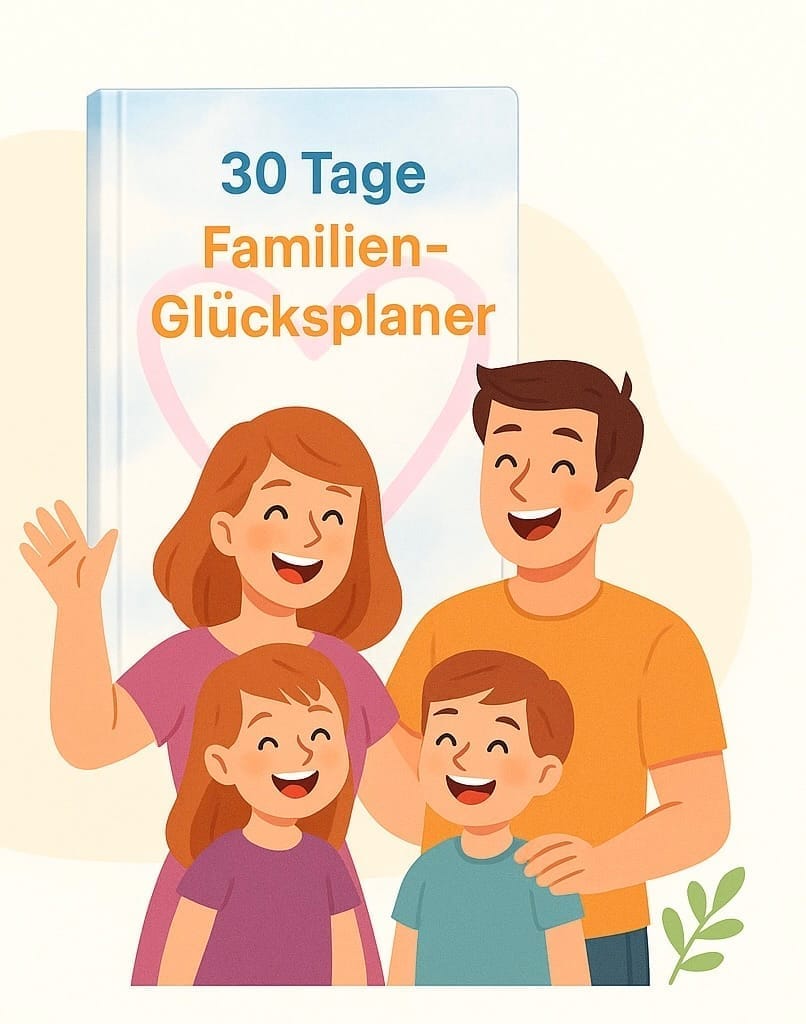 Der eBook 30-Tage Familien-Glücksplaner hilft dir als Mama und Papa, endlich wieder mehr Harmonie, Klarheit und Leichtigkeit in euren Familienalltag zu bringen.